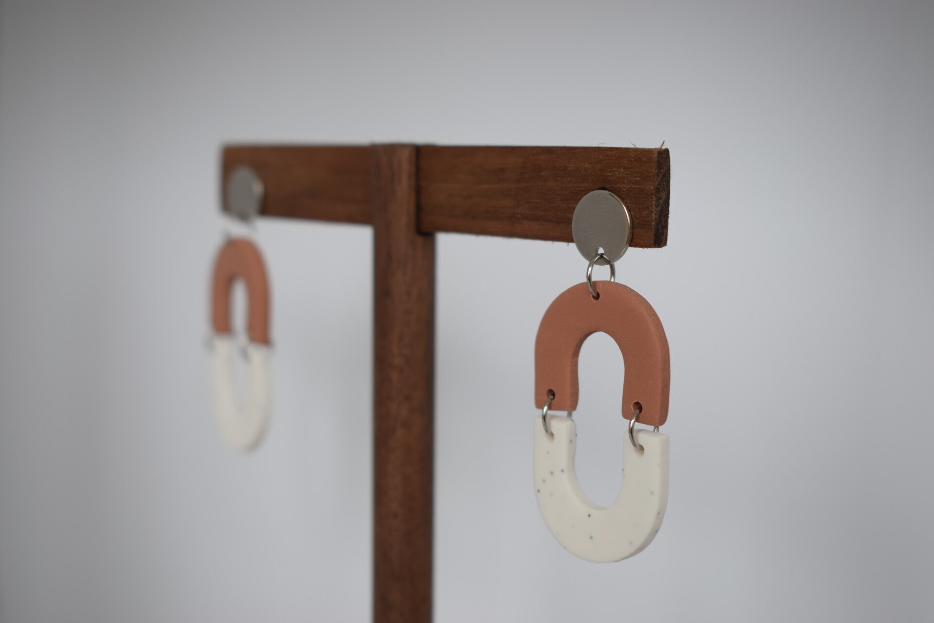 Stijlvolle tweekleurige ovale oorbellen. Verkrijgbaar in vijf kleuren zowel in zilver- als goudkleurig.