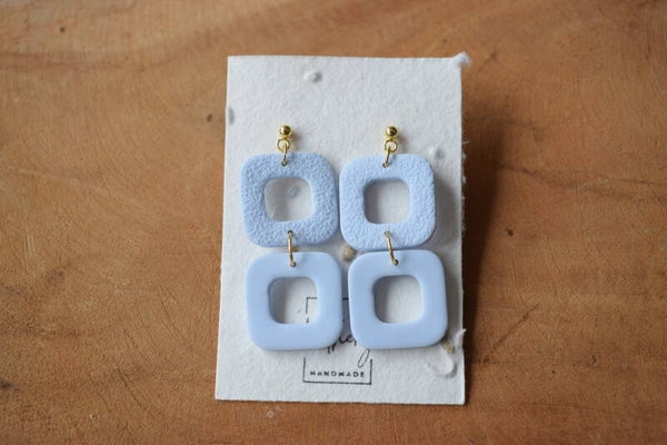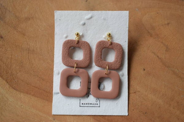Deze dubbele square oorbellen zijn mooie statement oorbellen, maar ook subtiel door het gebruik van één kleur. Het bovenste vierkantje heeft een mooie structuur die zorgt voor extra contrast.