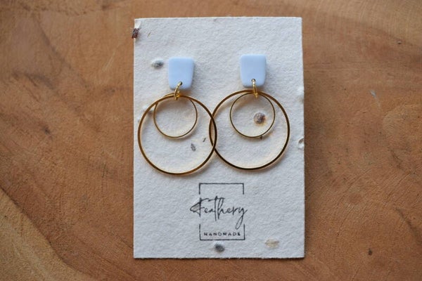 Deze leuke oorbellen zijn voorzien van messing ringen in twee maten. Tijdens het dragen bewegen de ringen speels heel licht heen en weer.