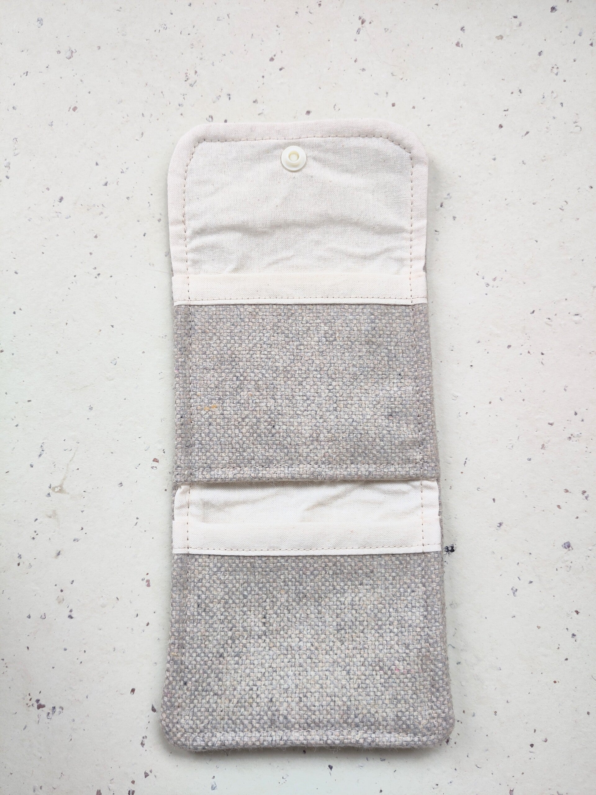Leuke kleine portemonnee met twee steekvakjes voor pasjes. De voering bestaat uit 100% katoen canvas. De portemonnee sluit met een drukknoop. Door zijn formaat neem je dit portemonneetje makkelijk mee!